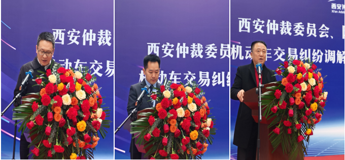 首先,西安仲裁委员会副主任徐文新、陕西机动车鉴定评估行业协会会长赵海森和西安市消费者协会秘书长茹自科分别致辞。徐文新强调构建多元化纠纷解决机制对于优化营商环境的重要性;作为行业协会发起单位陕西海朋保险公估有限公司董事长、会长赵海森强调组织行业共同应对纠纷调解的必要性。茹自科强调消费者协会将大力支持“机动车交易纠纷调解工作站”的工作。
