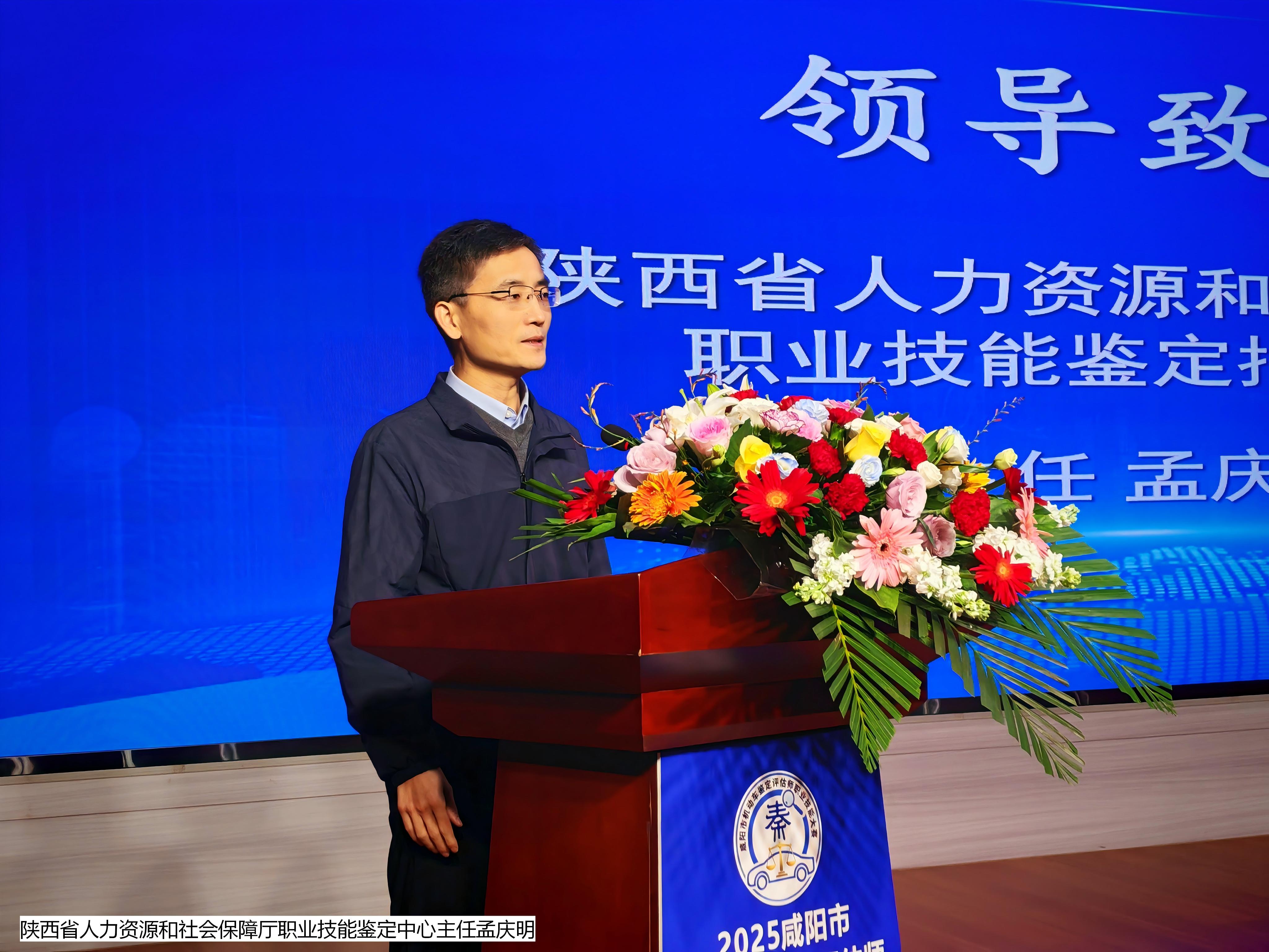 咸阳市总工会副主席高武岗致辞。他强调,匠心铸就梦想,技能成就人生。技能人才既是创业创新大军,更是高质量转型发展的支撑。习近平总书记指出,劳动者素质对一个国家、一个民族发展至关重要。举办 2025 年咸阳市机动车鉴定评估师职业技能大赛,就是要在汽车行业科技创新飞速发展的今天,为广大职工搭建一个展示风采、切磋技艺、提升技能的重要平台。努力打造一支知识型、技能型、创新型的劳动者大军,为咸阳经济社会高质量发展、现代化建设提供强有力的技能人才支撑。