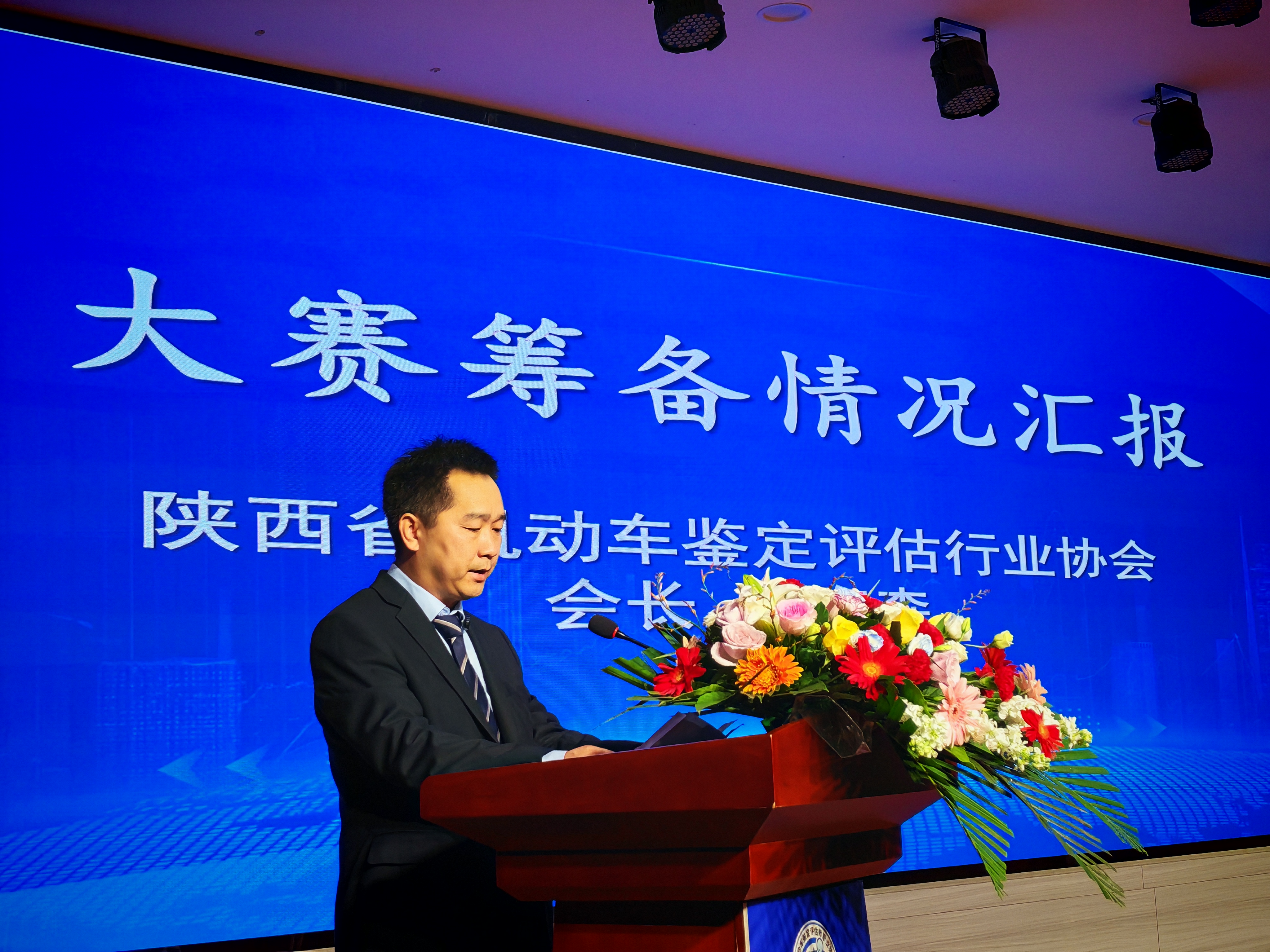 大赛由陕西省机动车鉴定评估行业协会会长赵海森,代表2025年咸阳市机动车鉴定评估师职业技能大赛组委会向咸阳市总工会、市人社局及嘉宾和参赛选手汇报筹备情况。