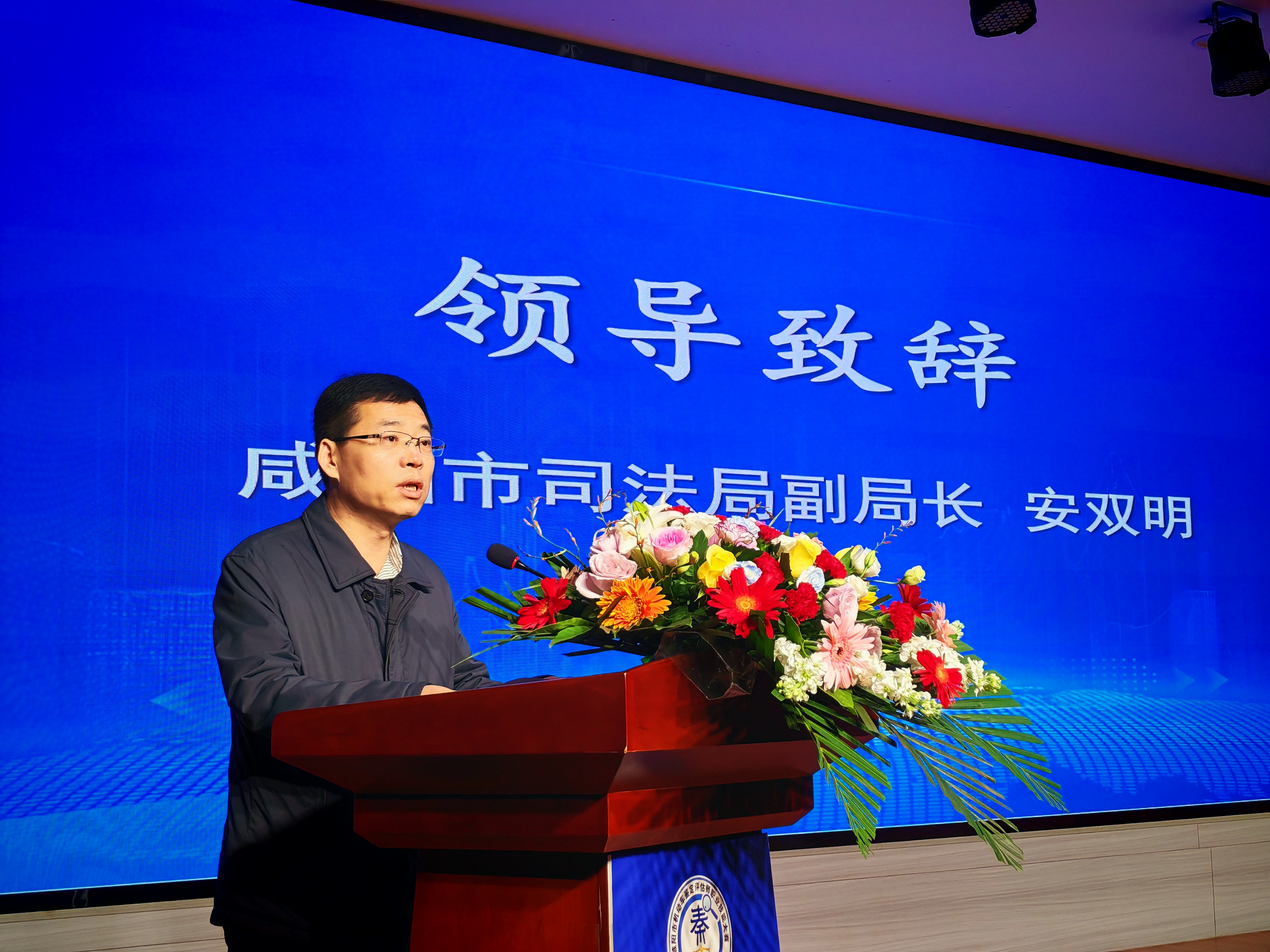 咸阳市司法局副局长安双明致辞。他表示,机动车的鉴定评估是处理纠纷的重要环节,既关系到交通事故的处理、保险赔偿的公平公正,也影响着二手车交易市场的安全检测等民生服务工作。